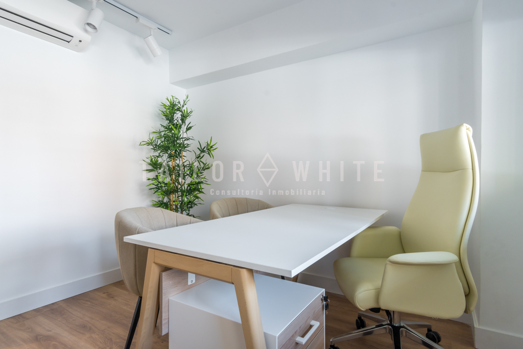 10,10 metros cuadrados, exterior a C/ Alberto Alcocer, amueblado, privado, con capacidad para 2 mesas de trabajo.